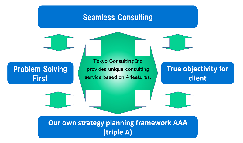 Tokyo Consulting Inc will provide unique consulting services based on 4 characteristics.