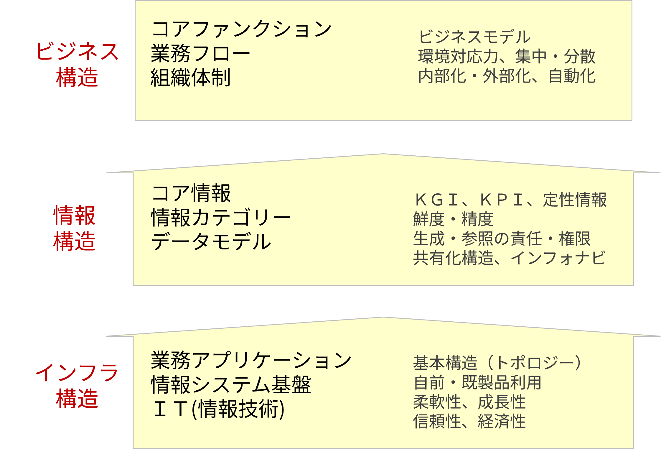 目標とするアチーブメントを実現するためには、3つの構造(ビジネス・情報・インフラ)を体系的に整備することが重要となります