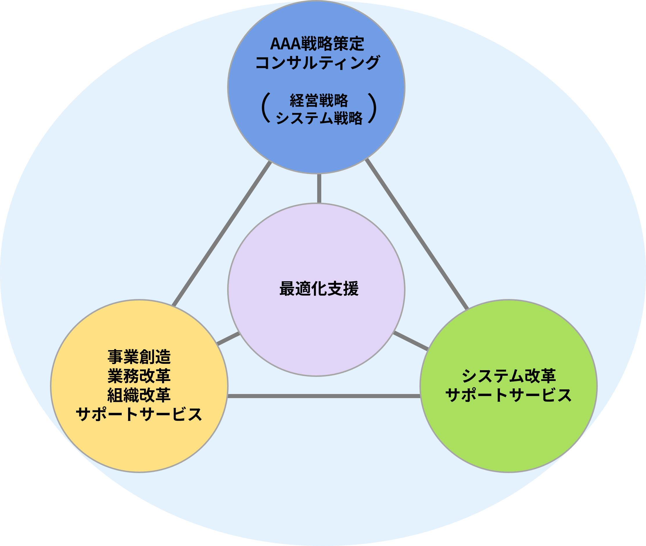 経営の視点から、AAA戦略の実現させるため、マネジメント診断から、事業創造、業務・組織改革およびシステム改革の各種計画、実行支援まで行います