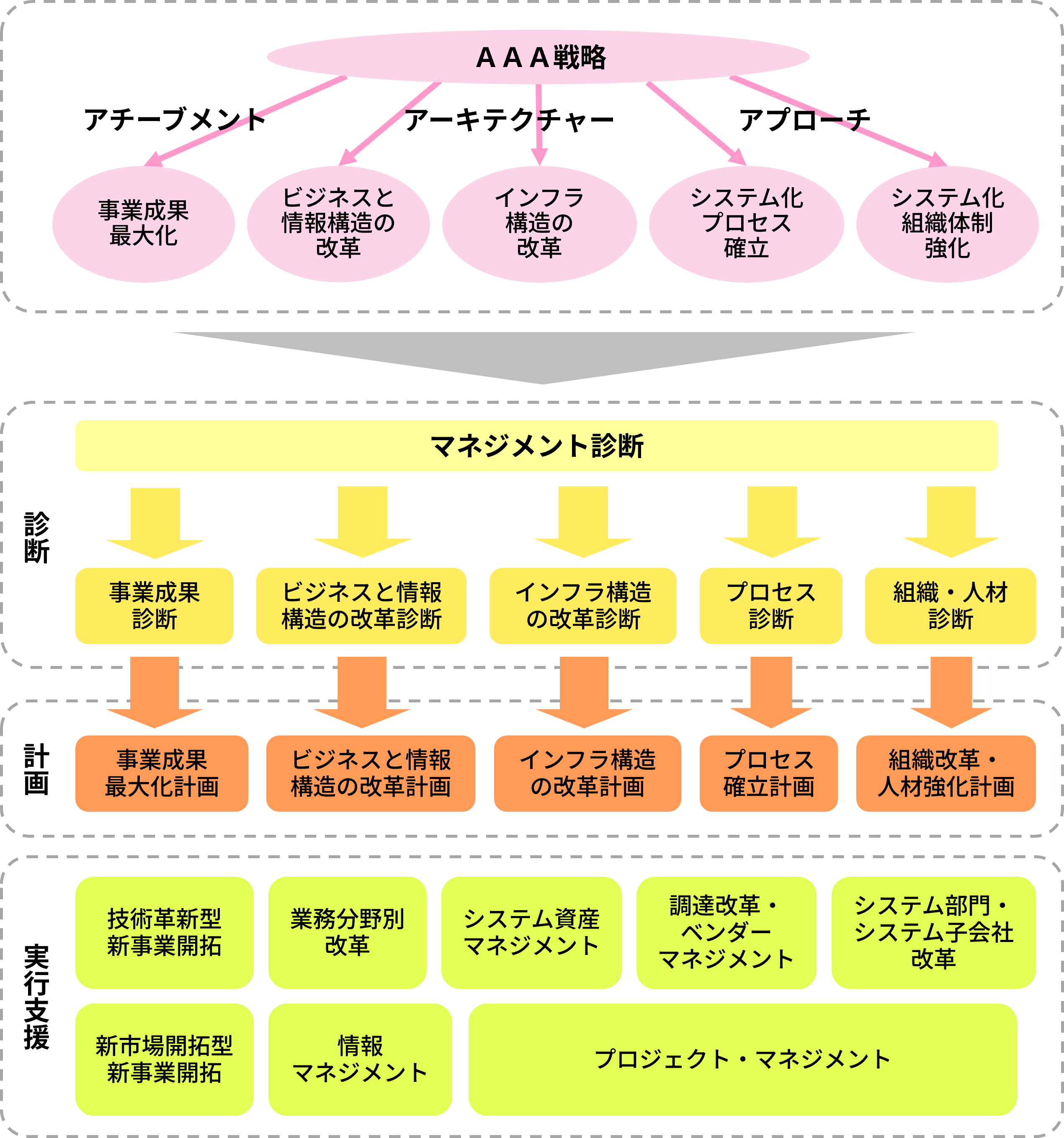 AAAのフレームワークにて、経営戦略、システム戦略の策定を支援します
