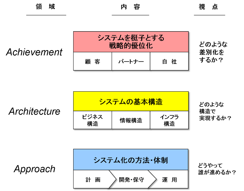 システムの基本構造であるビジネス構造、情報構造、インフラ構造をそれぞれどのように実現するか