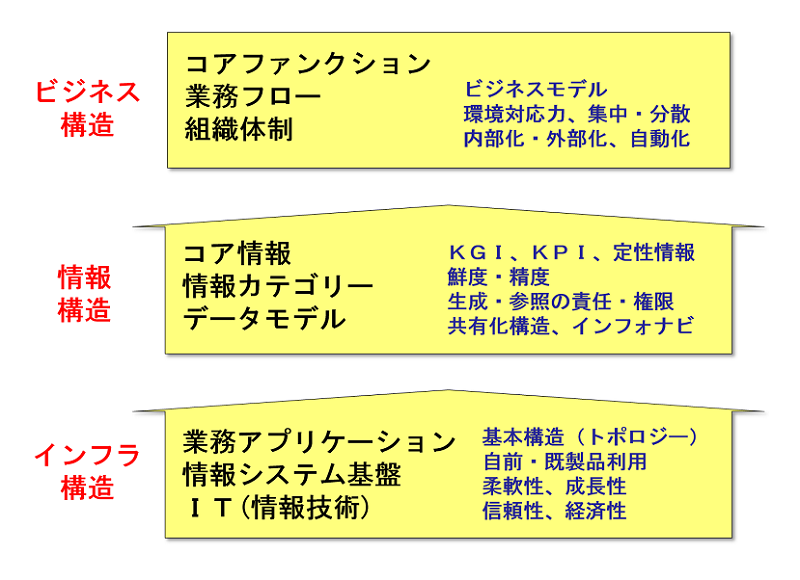 目標とするアチーブメントを実現するためには、3つの構造(ビジネス・情報・インフラ)を体系的に整備することが重要となります